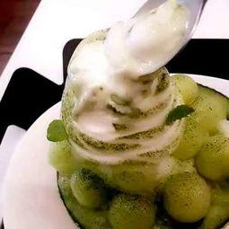1. 哈密瓜刨冰冰淇淋:将哈密瓜刨冰与冰淇淋混合,口感更佳。